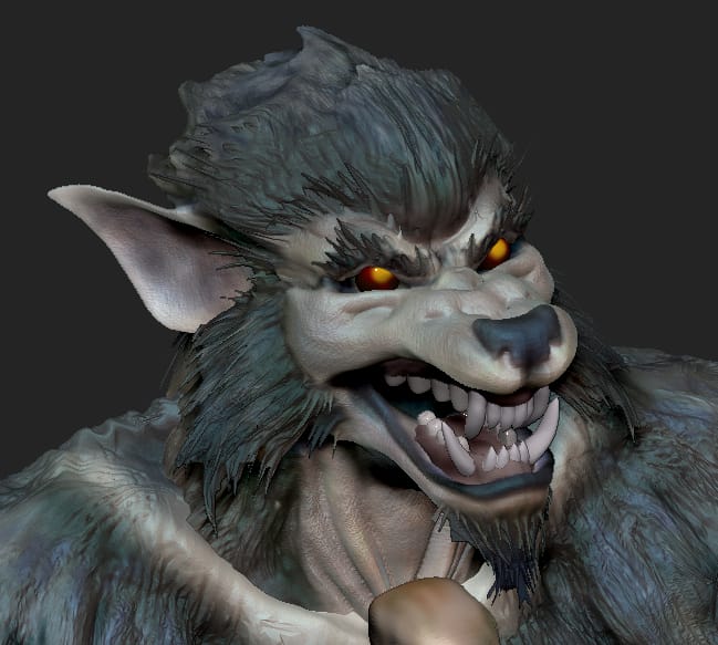 Cartoon hair, something of a first attempt. May come back and revisit it. In this case, it was all done via sculpting, when in reality it would have been better to snag one of the zbrush curve hair brushes that are out there.